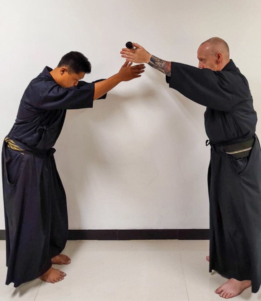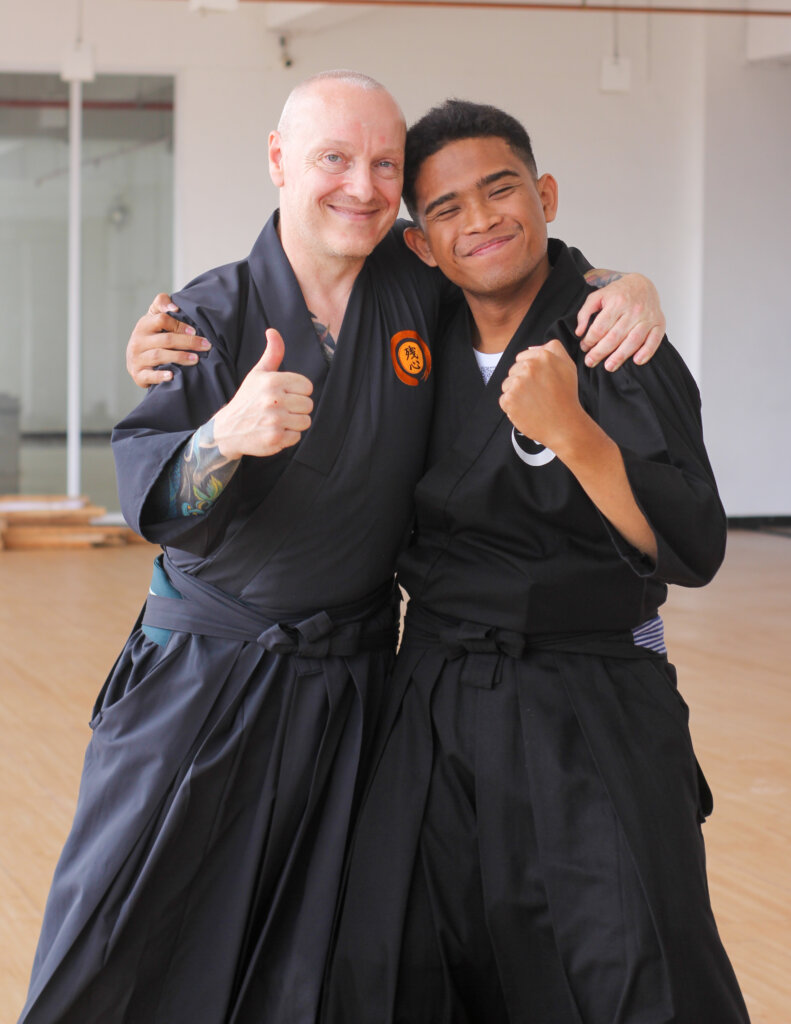 Soke Niina Toyoaki Gyokusou und Sensei Luciano Gabriel Morgenstern (7. Dan Renshi, Menkyo)